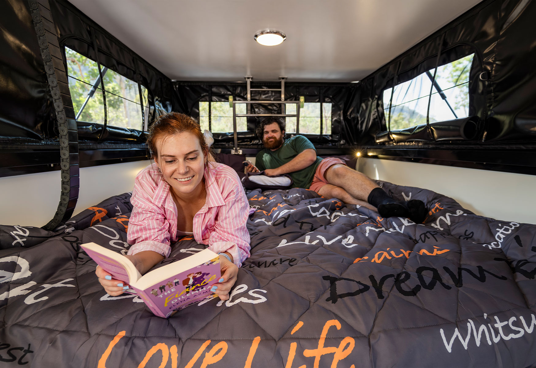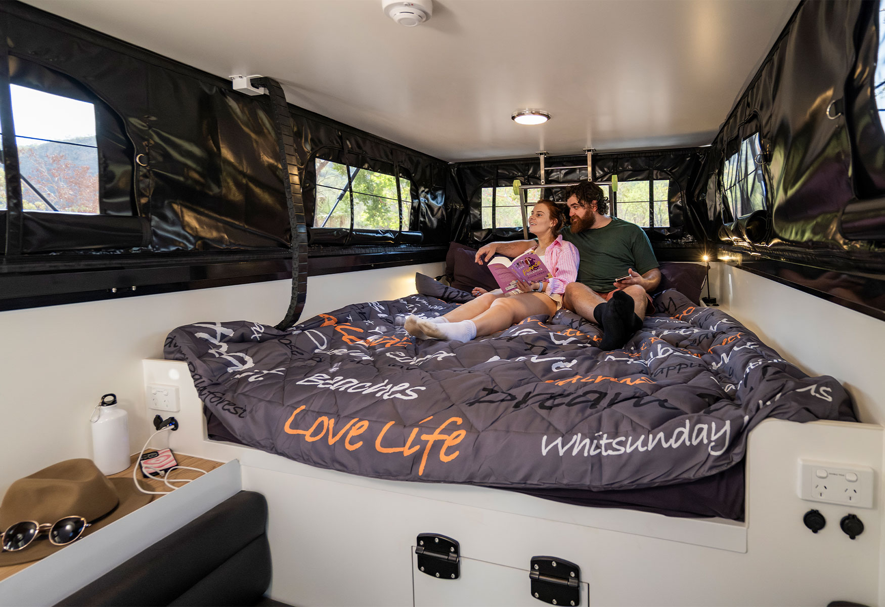 A permanent double bed means no nightly setup or pack-down, just climb in and relax after a day of exploring. Designed for comfort and convenience, it offers a proper sleeping space while keeping the rest of the camper ready for living and adventure.