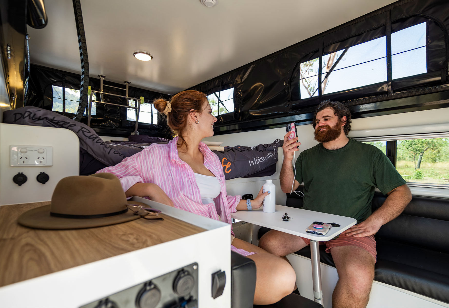 The interior of the Windsor Maverick 2 Berth 4WD Campervan is arranged to maximise functionality within a compact space. Sleeping, dining and storage zones are configured to allow smooth transitions between day and night use.
